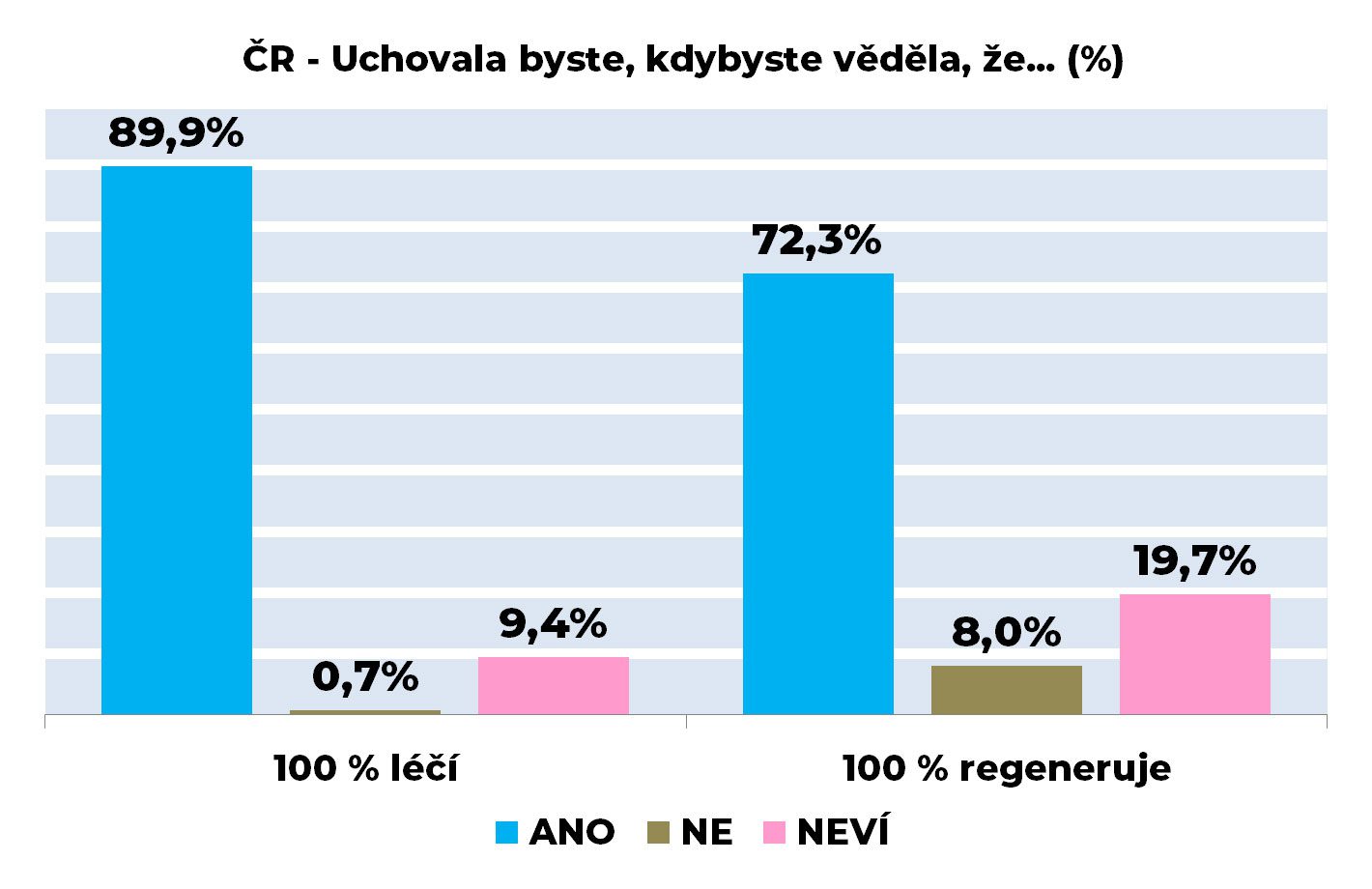 Pokud by maminky věděly, že pupečníková krev nebo tkáň pupečníku léčí nebo regeneruje, hrálo by to rozhodující vliv na jejich rozhodování. Z uvedených grafů je ale také vidět, že důležitějším kritériem je léčba dítěte na úkor využití k pozdější regeneraci organismu.