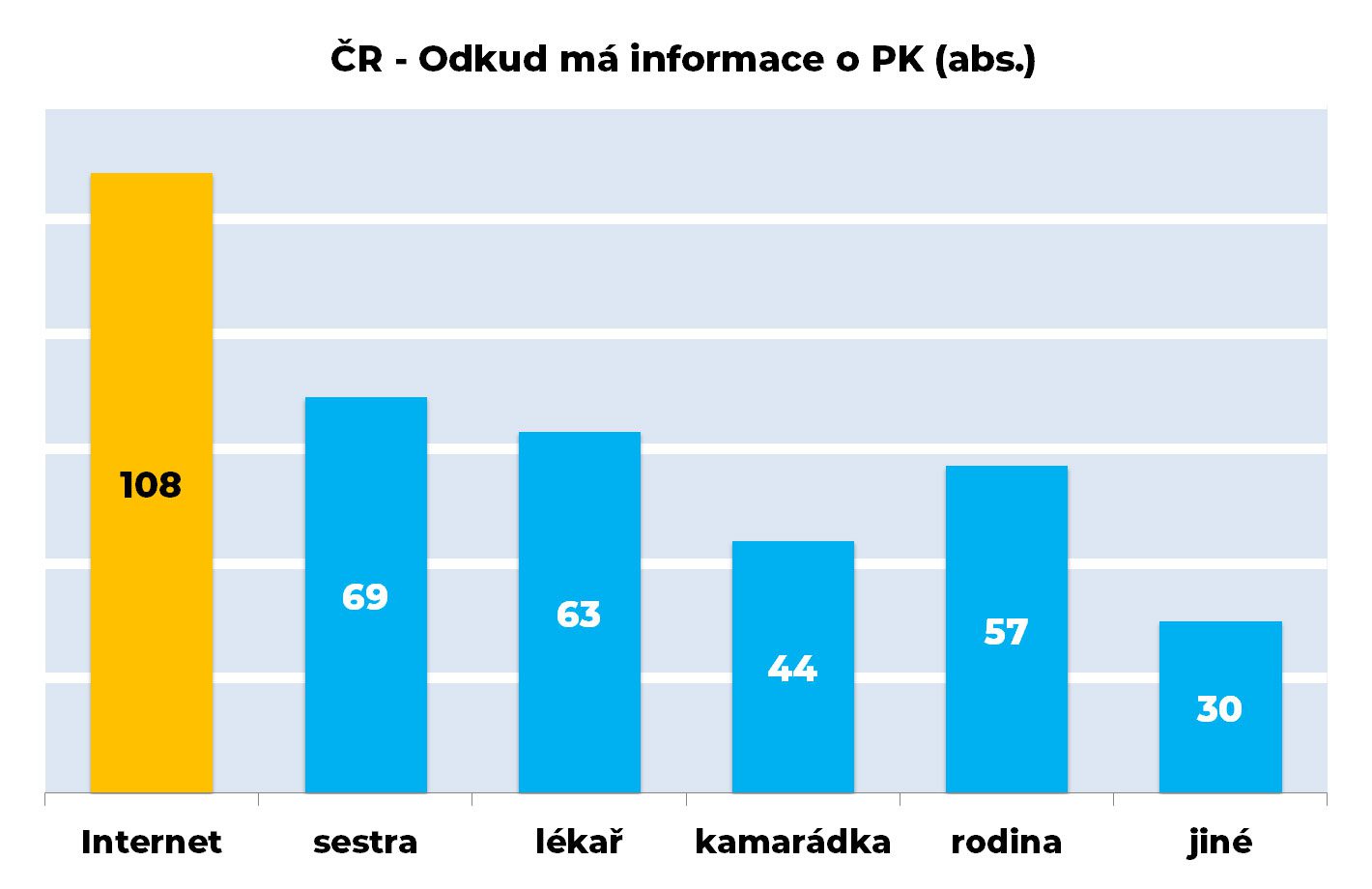 Druhým okruhem otázek průzkum zjišťoval, z jakých zdrojů se maminky o možnosti uchovávat pupečníkovou krev dozvěděly. Nejvíce informací o pupečníkové krvi nachází maminky na internetu, na druhém a třetím místě je zdravotnický personál a až nakonec jsou rodina a kamarádky. Je vidět, že si maminky informace skládají vždy z více zdrojů a internet považují za přirozený a adekvátní zdroj informací.